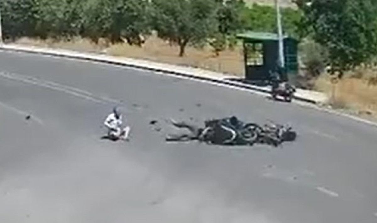Görüntülerde, tali yoldan ana yola çıkmak isteyen motosikletlinin ana yolda seyreden bir motosikletle çarpıştığı ve sürücülerin yola savrulduğu anlar yer aldı.