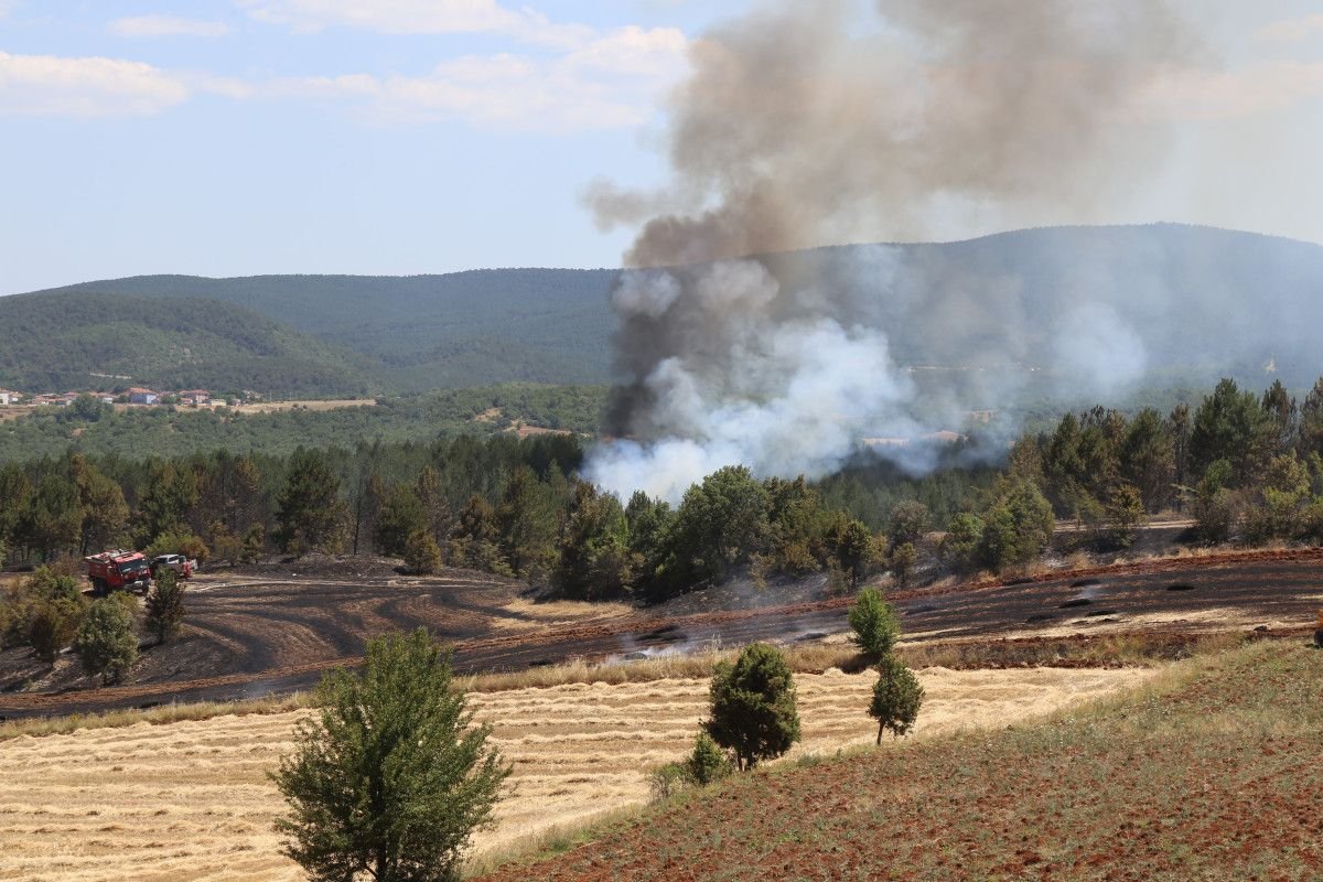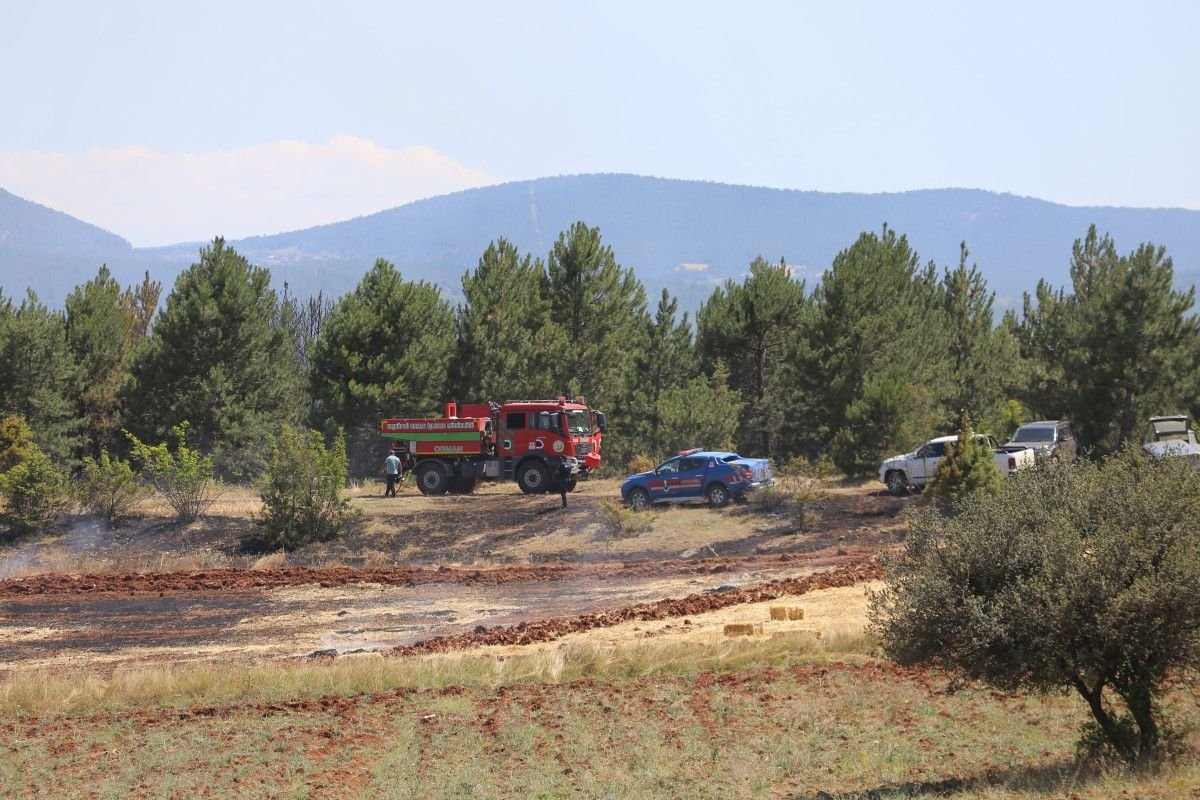 Kastamonu’nun Taşköprü ilçesine bağlı Örhenli köyünde balya makinesinde başlayan yangın, kısa sürede tarlaya yayıldı. Yangını fark eden vatandaşlar durumu 112 Acil Çağrı Merkezi’ne bildirdi.
