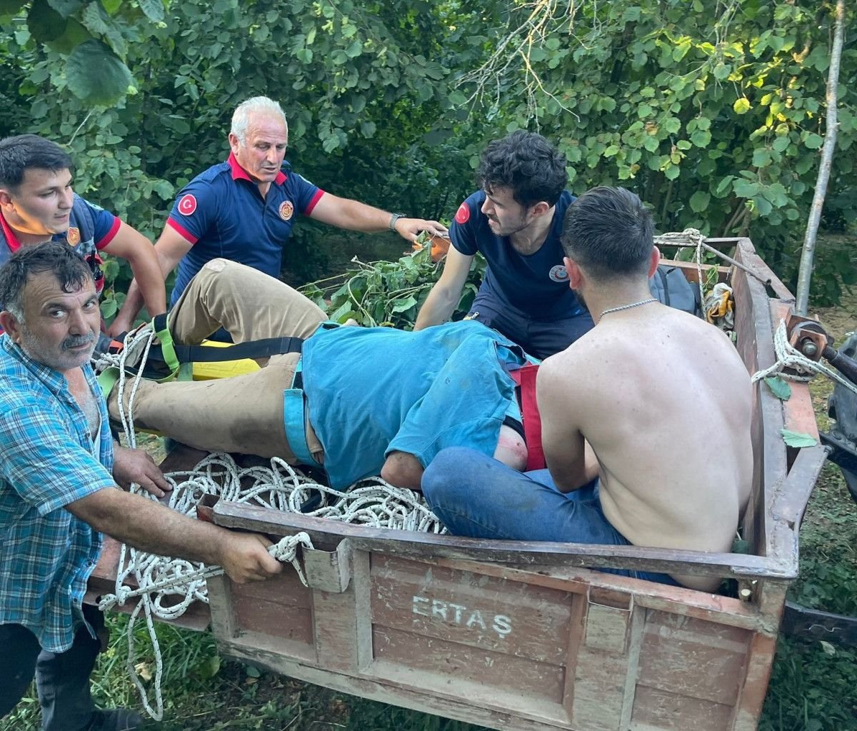 Fındık tarlasında filiz alan Hasan A., dengesini kaybederek dereye düştü.