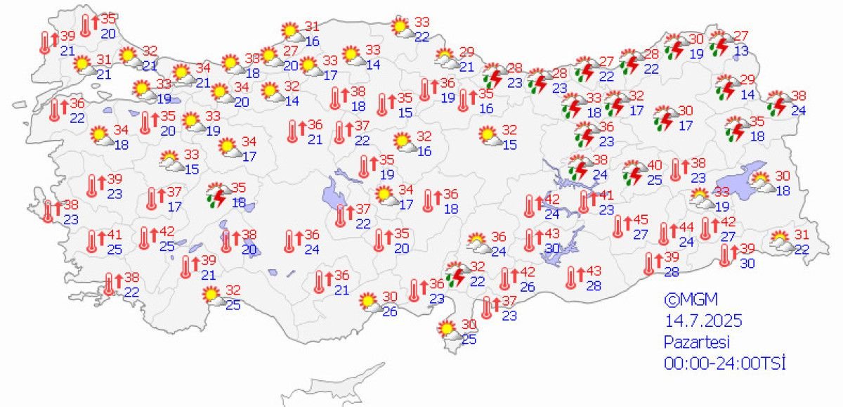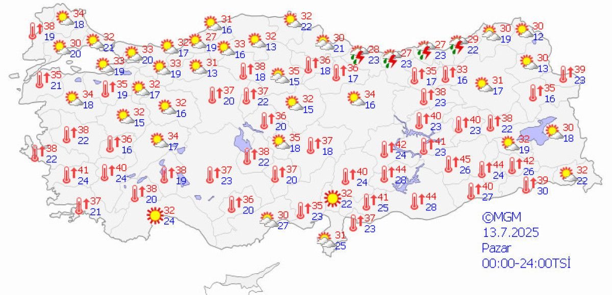 Hafta sonuna doğru, 11-12 Temmuz tarihlerinde sıcaklıklar yer yer 40 dereceye yaklaşsa da, 13 Temmuz Pazartesi’den itibaren kuzey ve iç bölgelerde hafif bir serinleme bekleniyor.